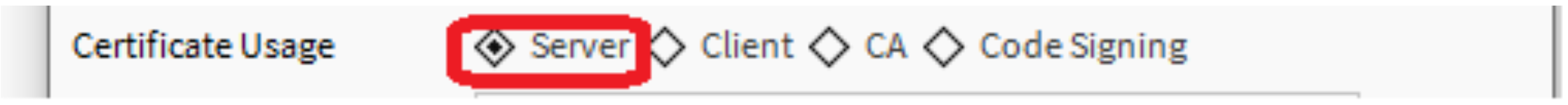 - Please note: the Common Name (CN) should contain the host name or the address of the server, and ensure to select the "Server" Certificate Usage.