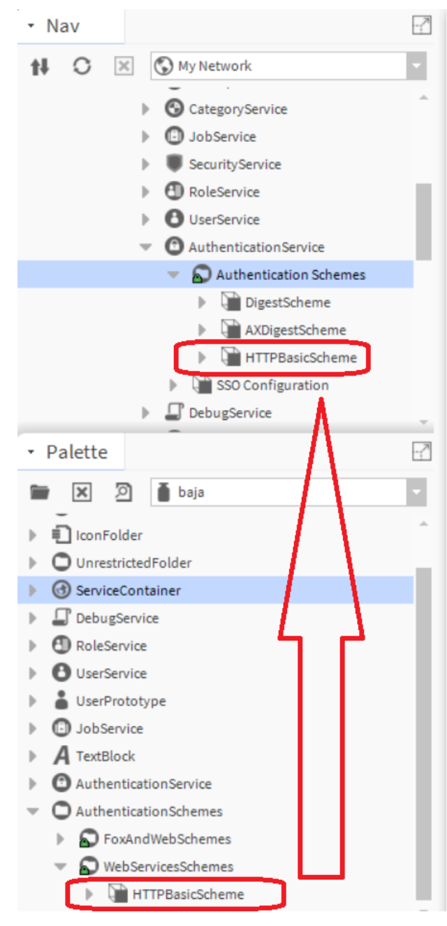 - Drag the "HTTPBasicScheme" to the Authentication Schemes in the station.