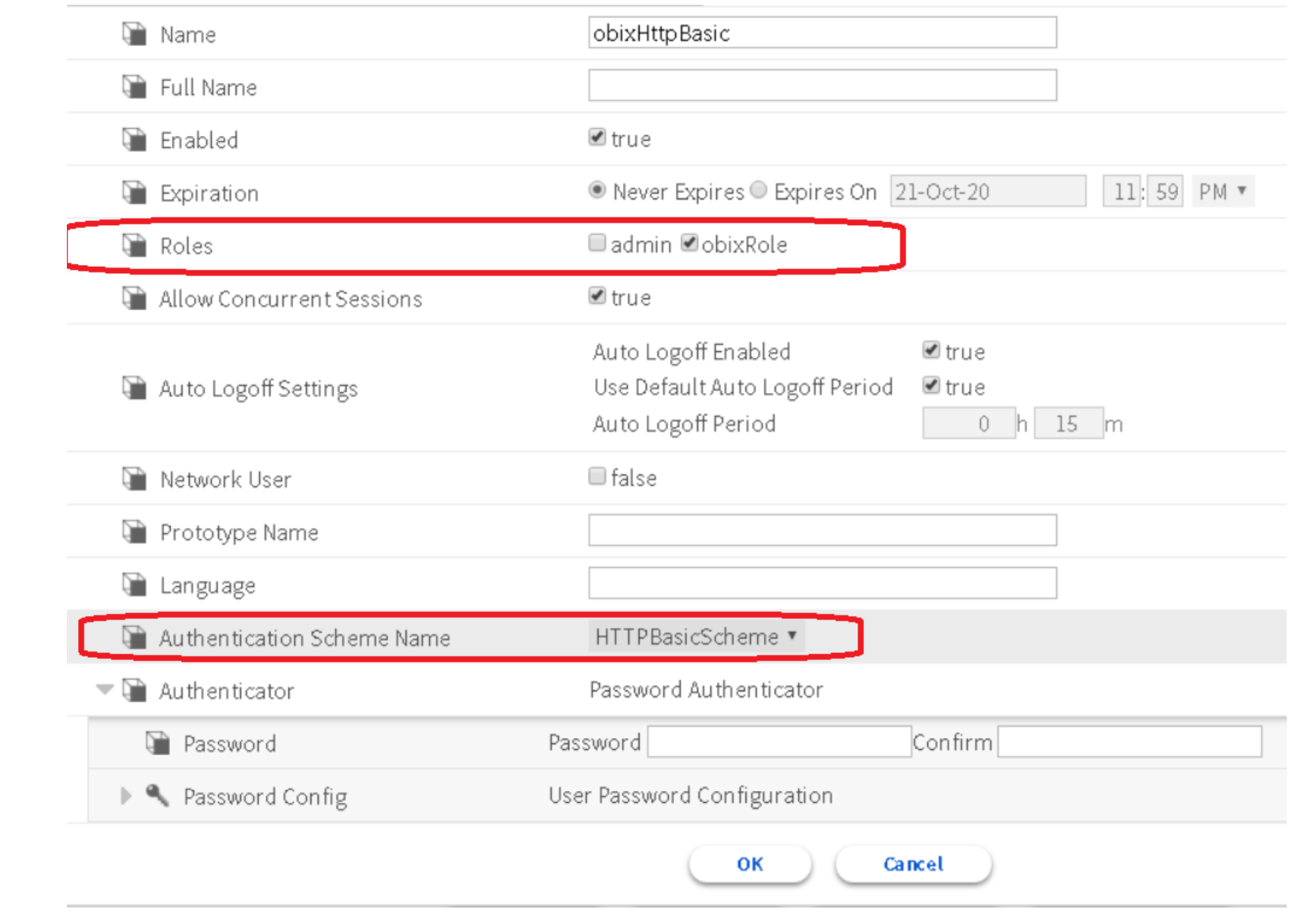 NOTE: if using chrome browser as a oBIX client to get the components, please assign a "DigestScheme" to the user.