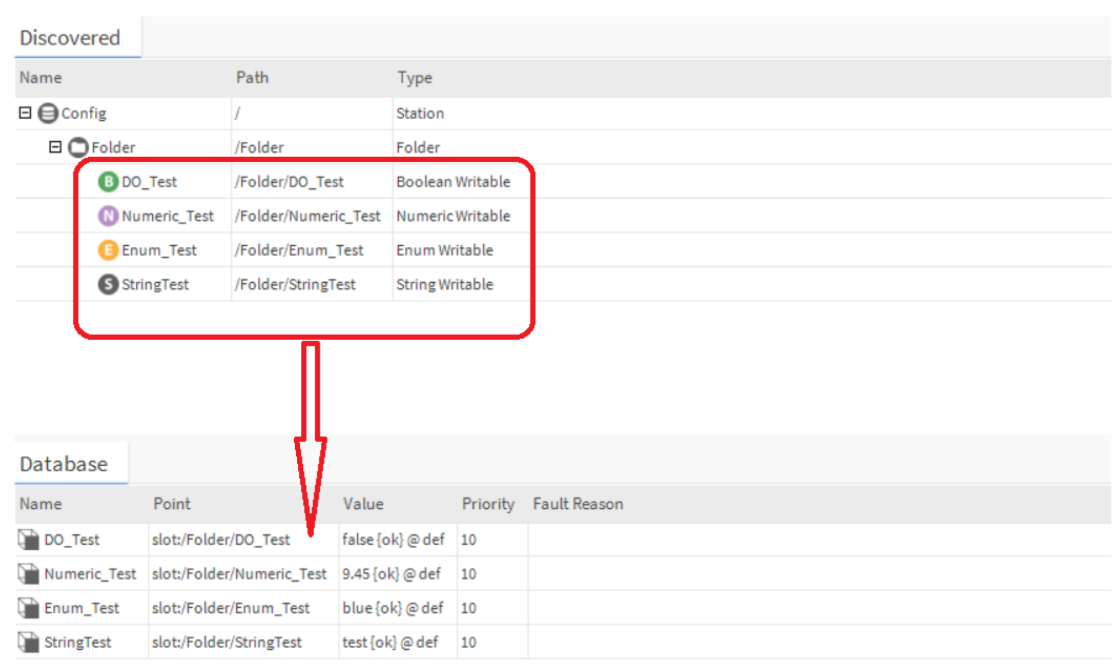 - Click the Discover button - all the station points will be shown in the "Discovered" table.